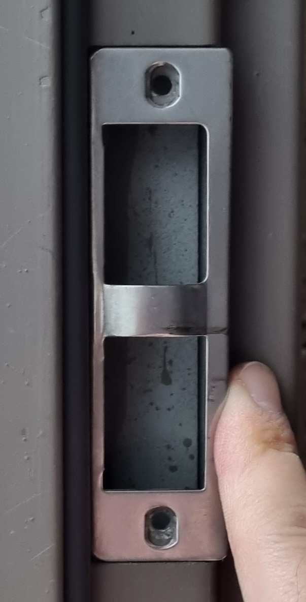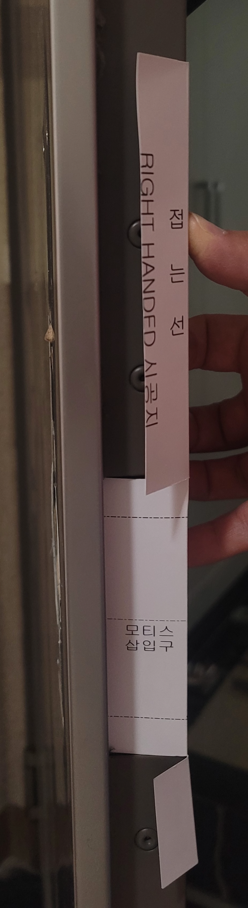 모티스를 방화문 중간으로 밀어넣고, 위 아래 나사를 잠그면 되는데,