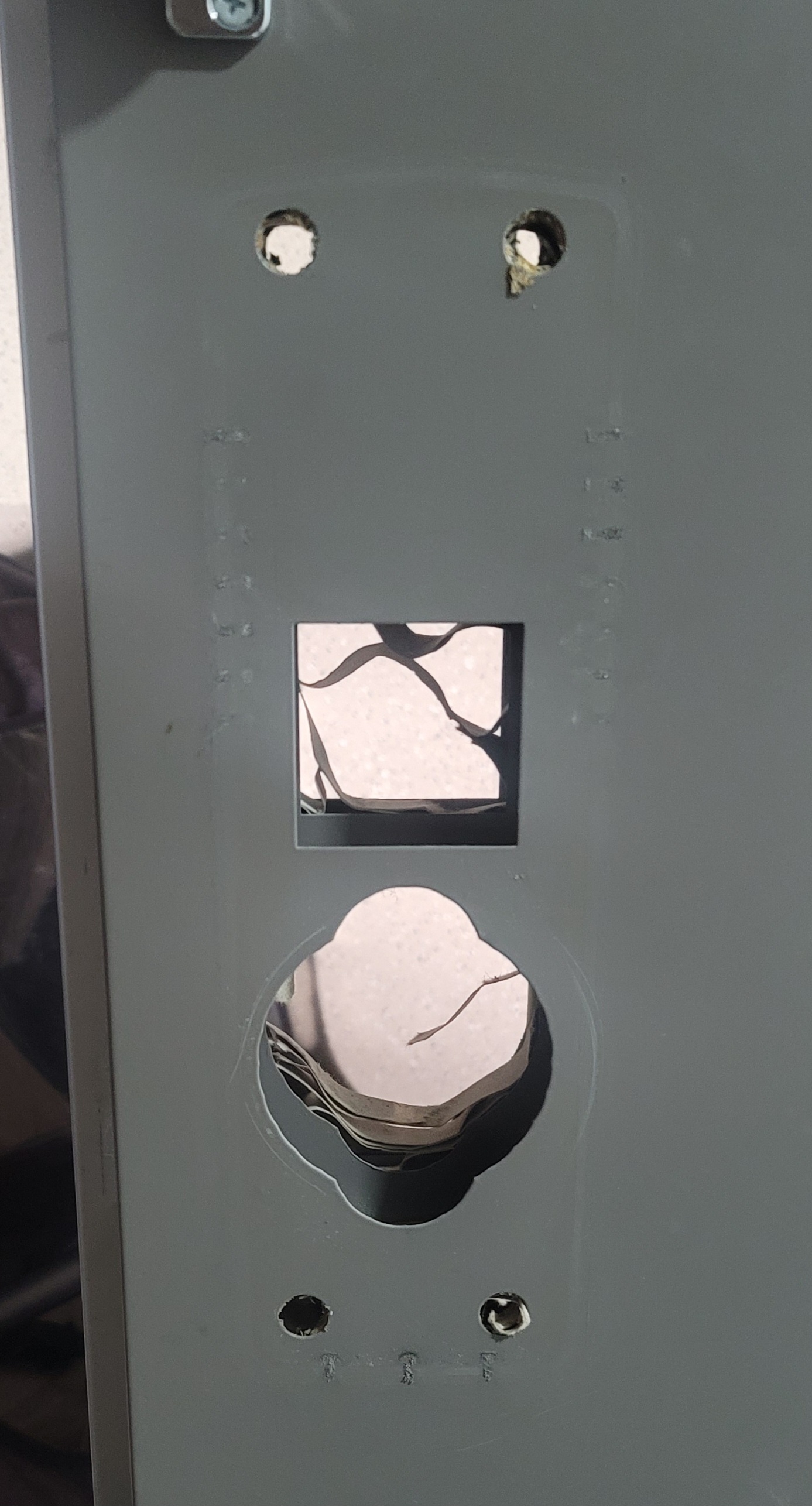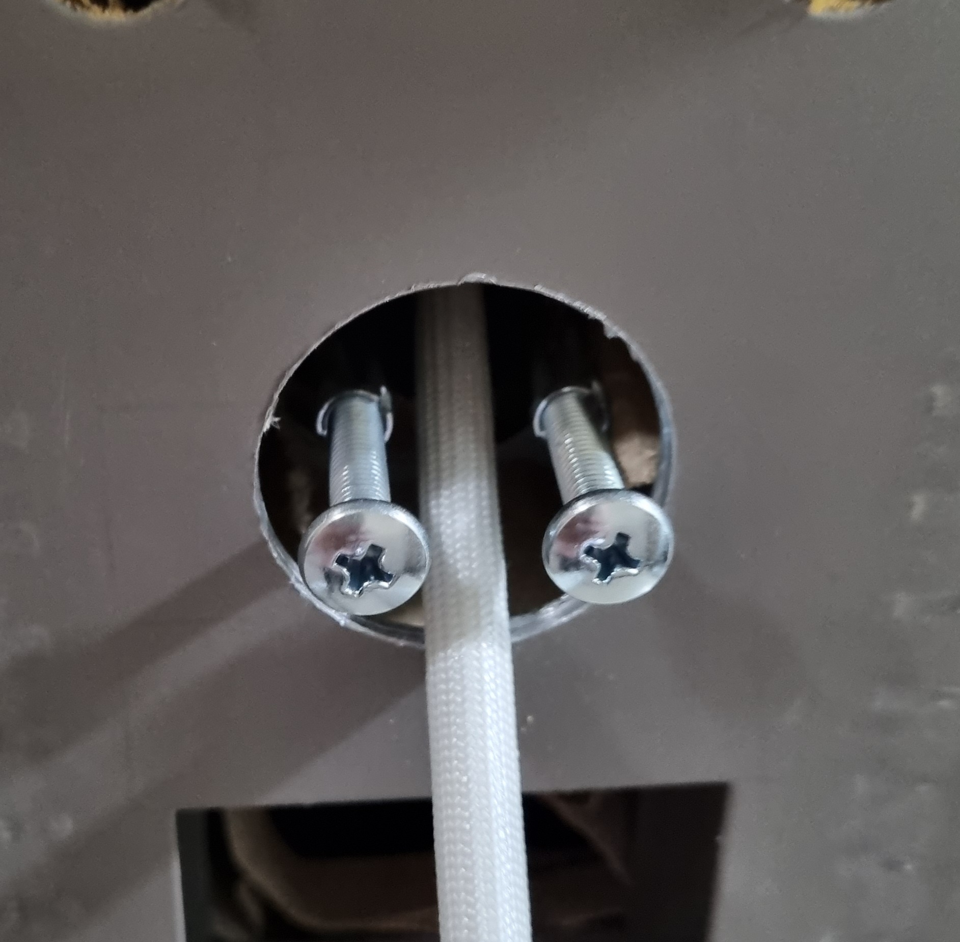 그런 후 상단에 뚫은 32mm 구멍에 해당 나사가 들어가도록 외부 패널 조립