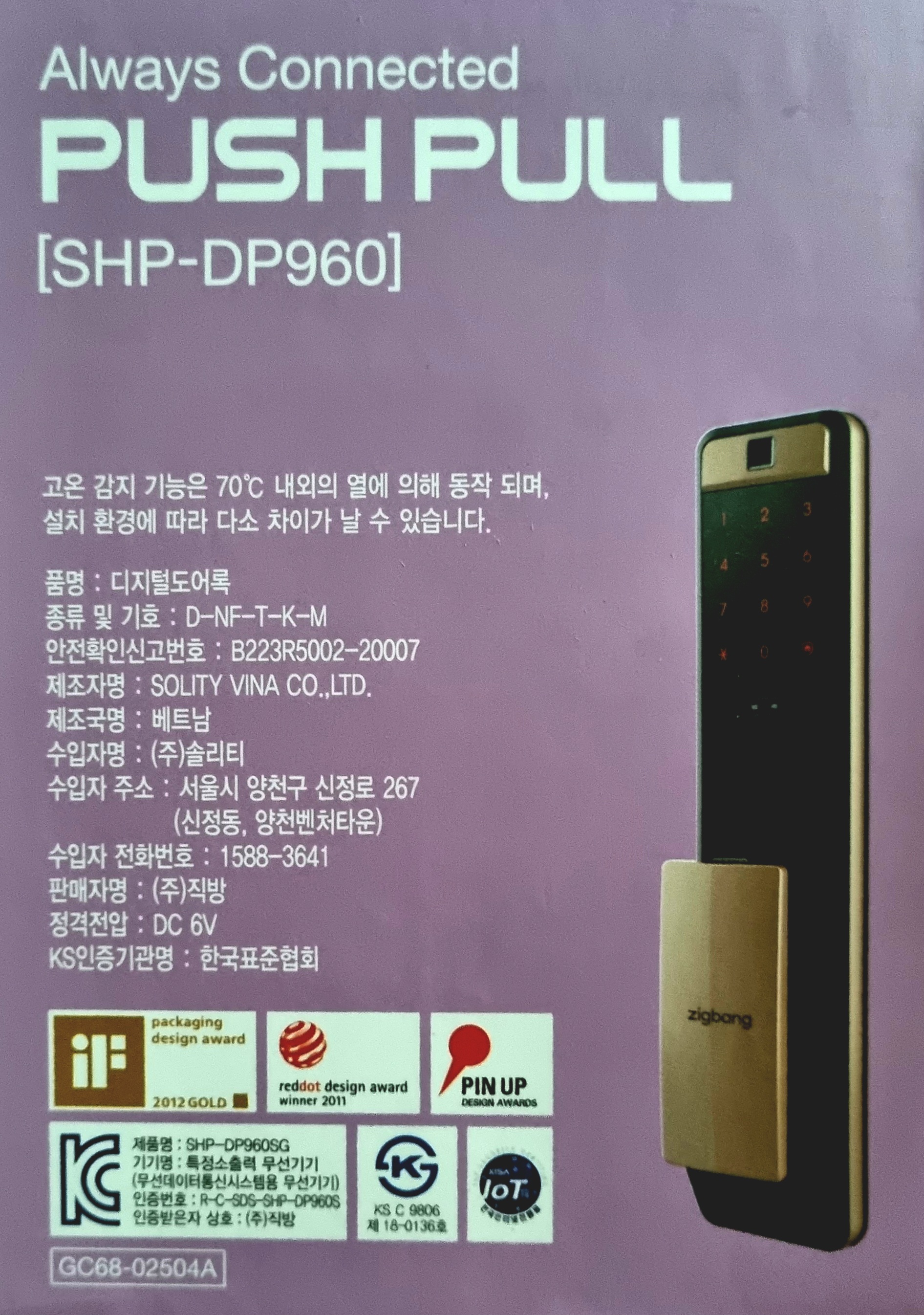 예전에는 삼성SDS에서 판매하였는데, 삼성 SDS 도어락 사업부를 직방이 인수하면서 직방 브랜드로 변경되어서 판매중