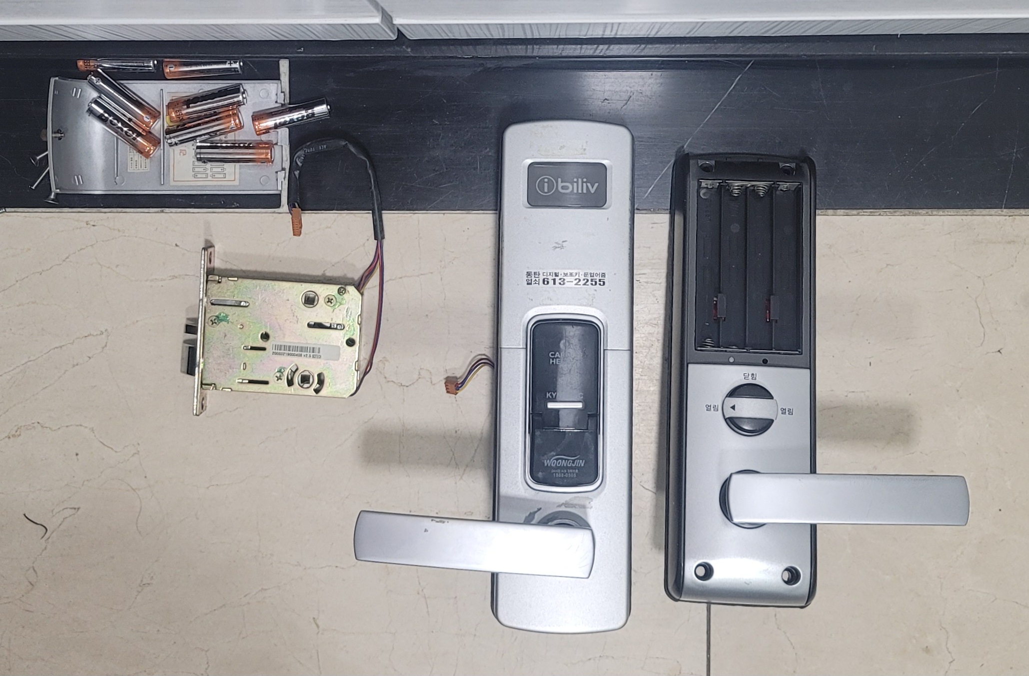- 도어락 앞 / 뒤 양면을 뽑아냄